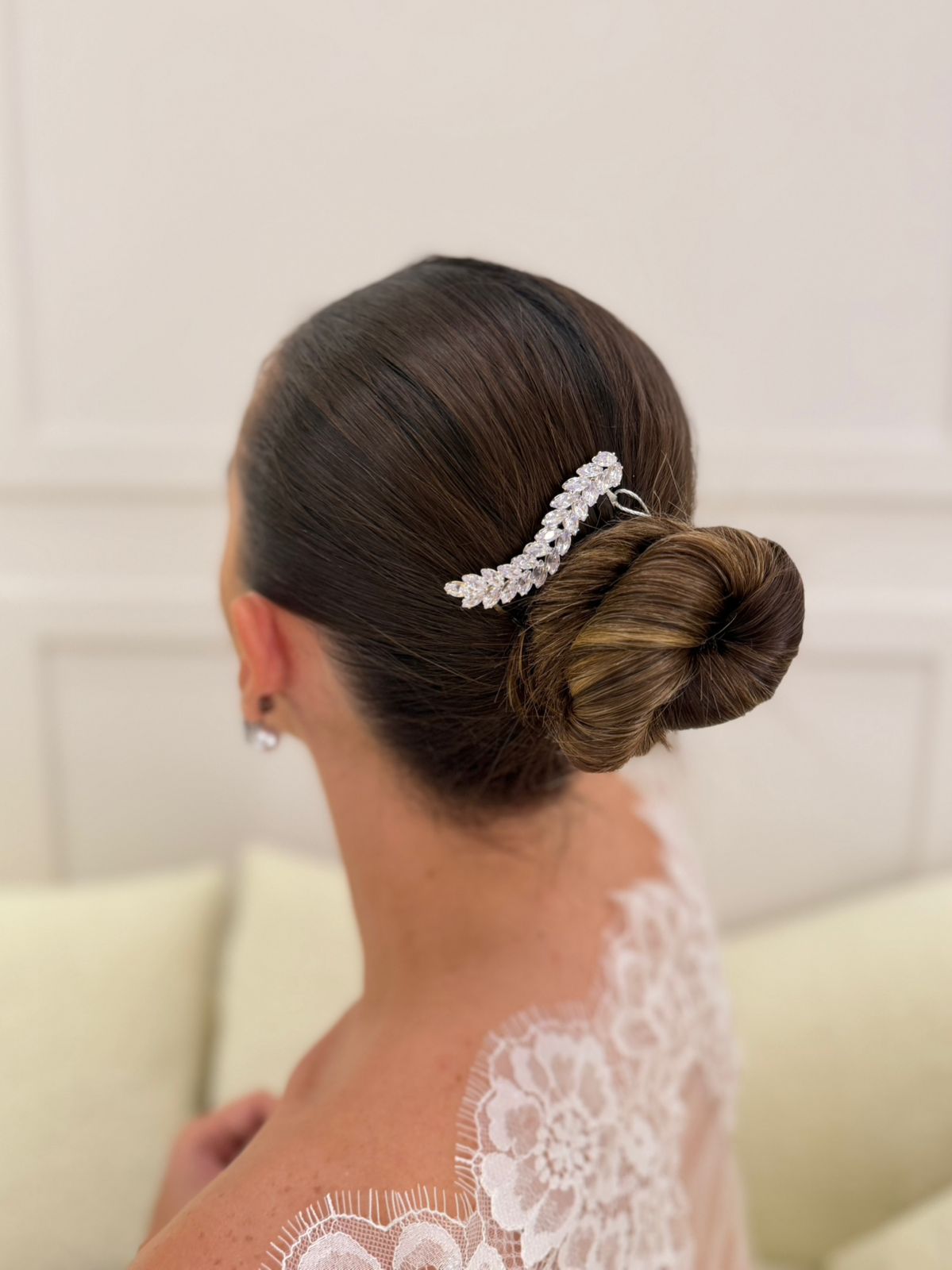 GRINALDA COM ACABAMENTO EM PENTE. FETIA EM ZIRCÔNIA E STRASS.